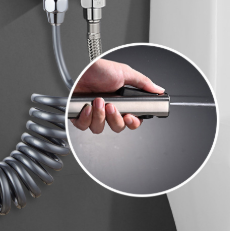Detta kompletta bidé-sprutset har en handhållen spruta i ABS-plast av hög kvalitet med 2 justerbara vattenlägen (kraftig stråle/snålt regn), en infällbar TPU-fjäderslang, en solid vinkelventil i mässing och ett väggfäste av zinklegering. Med flerlagers elektropläterad yta, universellt G1/2-gränssnitt och 4 färgalternativ, ger den pålitlig prestanda för personlig hygien, toalettrengöring och hushållsbruk för många ändamål.