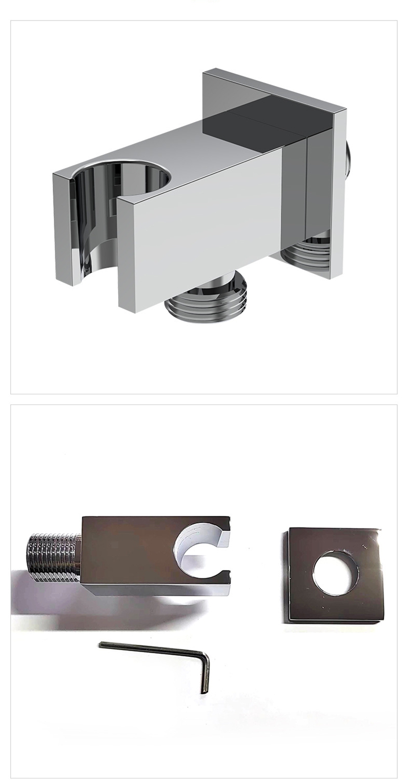 Design och struktur:Har en elegant, minimalistisk fyrkantig profil med ett förstärkt U-format spår för stabil placering av duschhuvudet och ett standardgängat gränssnitt för sömlös anslutning till vattenledningar. Den väggmonterade designen maximerar utrymmeseffektiviteten och håller badrummet snyggt och organiserat.