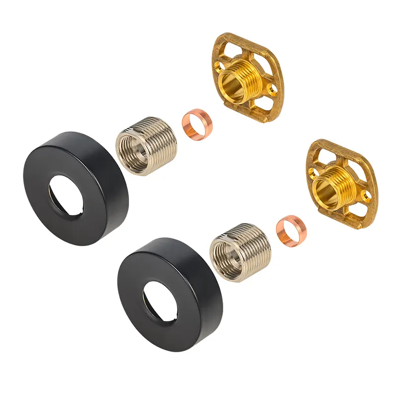 Den svarta duschplattan är en viktig del av duschsystemet, dess kärnfunktion är att tillhandahålla en solid, pålitlig monteringsbas för duschkranen och säkerställa ett jämnt vattenflöde, anslutningstätning. Produktens kropp är gjuten i högkvalitativ mässing, och exteriören matchas med en kraftig kolstålpanel. Mässingsdelen är i direkt kontakt med vattenflödet, med bra korrosionsbeständighet och lång livslängd; De externa kolstålpanelerna ger ytterligare strukturell styrka och stöd, vilket säkerställer att hela monteringen är säkert monterad på väggen och kan motstå de olika krafterna av daglig användning.