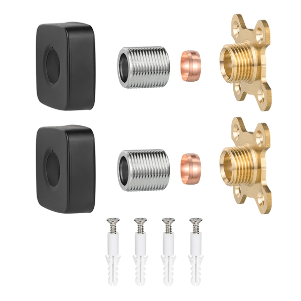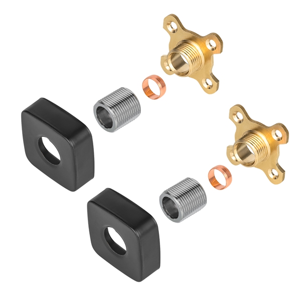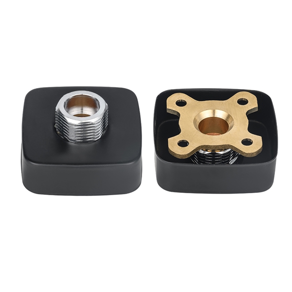 Svart fyrkantig duschblandarplatta. Dess huvudsakliga syfte är att ge en robust, platt och lättinstallerad bas för väggmonterade kranar. Produkten antar den sammansatta strukturen av mässing och kolstål: nyckelkraften och anslutningsdelarna som är i direkt kontakt med väggen och kranarnas gränssnitt använder mässing för att säkerställa långvarig korrosionsbeständighet och täthet av anslutningen; Som den huvudsakliga bärande strukturen är plattkroppen gjord av höghållfast kolstål, vilket ger den nödvändiga stödjande styvheten för helheten och förhindrar deformation på grund av långvarig stress. Ytan på plattkroppen behandlas genom elektroplätering och andra processer, som visar ett gyllene utseende och är lätt att rengöra. Den är utformad som en standard fyrkant med ett förinställt installationshål för att matcha vanliga krantillbehör och förenkla installationsprocessen.