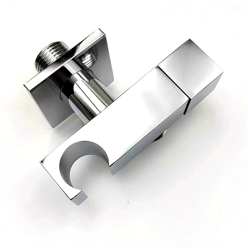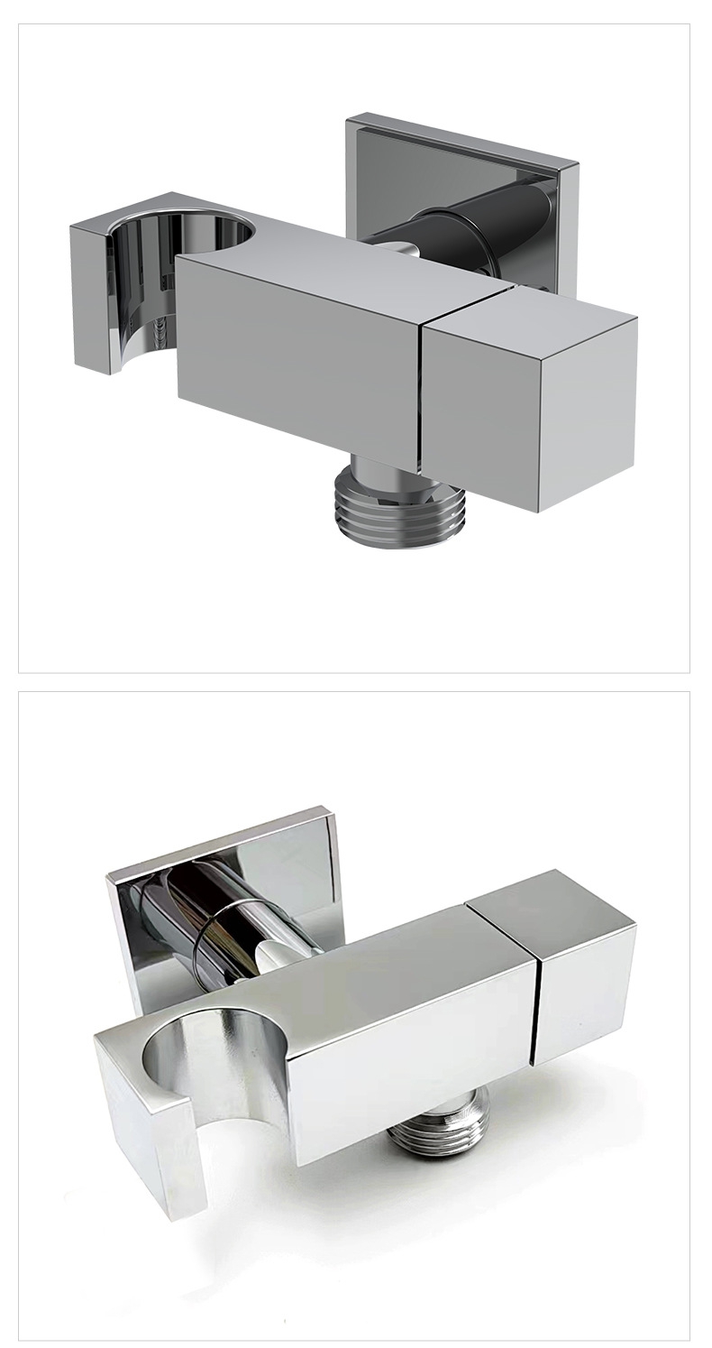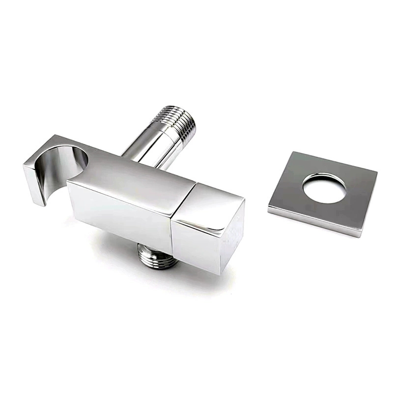 Förtjockad fyrkantig vinkelventil i massiv mässing med duschhållare, 1/2" rak stoppventil för bidéspray och handdusch, VVS-armatur för badrum
