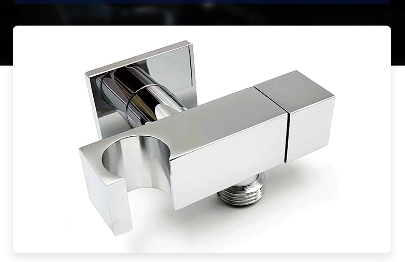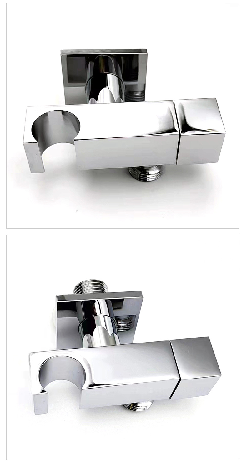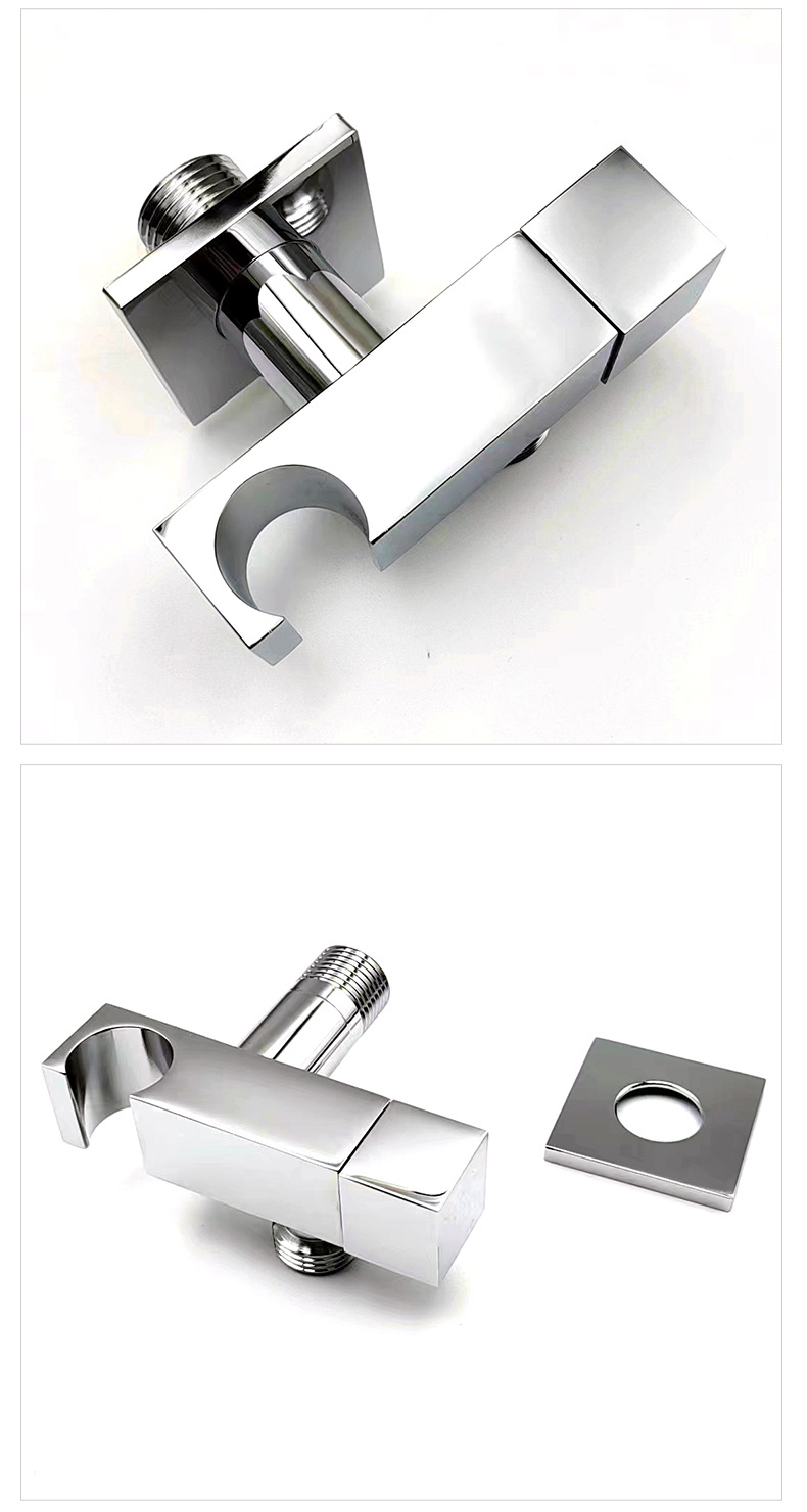 Dess kärnsyfte är att tillhandahålla en robust, läckagesäker och lättinstallerad anslutningslösning för väggmonterade handhållna duschar. Produkten antar en mässingsstruktur med hög renhet: de viktigaste kraftbärande och vattentransporterande delarna som är i direkt kontakt med vatten och väggen använder premium mässing för att säkerställa långvarig korrosionsbeständighet, rostbeständighet och täthet av anslutningen; Ytan på produkten är behandlad med förkromning och poleringsprocesser, som visar ett ljust kromutseende, antifouling och lätt att rengöra. Den är designad med standardgängspecifikationer och ett matchande dekorativt lock för att passa vanliga handhållna duschslangar och vägguttag, vilket förenklar installationsprocessen och säkerställer en snygg och vacker installationseffekt.