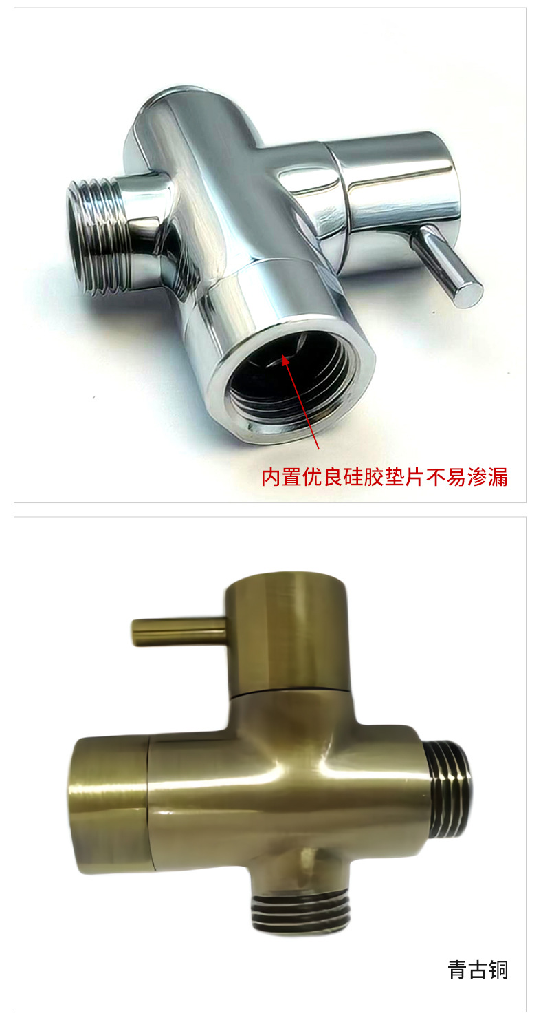 Dess kärnsyfte är att tillhandahålla en multifunktionell, läcksäker och lättinstallerad integrerad lösning för badrumsduschsystem, som integrerar vattenavledning, flödeskontroll och handhållna duschfästefunktioner i en kompakt design. Produkten antar en solid mässingsstruktur med hög renhet: vattenvägen, gängförbanden, ventilkärnan och de bärande delarna som direkt kommer i kontakt med vatten och vägg är tillverkade av förstklassig mässing för att säkerställa långvarig korrosionsbeständighet, rostskydd, noll vattenläckage och stabil drift. Ytan på produkten är behandlad med kromplätering och poleringsprocesser, som visar ett ljust spegelliknande kromutseende, antifouling, fingeravtrycksresistent och lätt att rengöra.