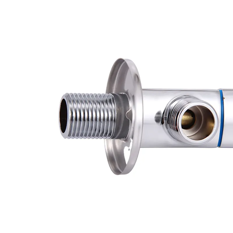 Vår standardförstärkta mässingsvinkelventil med tonvikt på tryckprestanda. Ventilhuset antar den uppgraderade solida mässingskonstruktionen i ett stycke, det övergripande tjocka smidet, har högre strukturell styrka, kan motstå det starkare trycket. PN16-tryckklassificeringen betyder att produkten är designad för att motstå högre nominella tryck än konventionella hushållsvinkelventiler som kan ge ett värmestöd för t.ex. fluktuationer. Den keramiska ventilkärnan i mässing som lämpar sig för varmt och kallt vatten är vald för att säkerställa tätheten. Kroppsytan är avslutad med en högkvalitativ treskiktsplätering (mässingsbas, korrosionsskyddande nickelbeläggning, högkromfinish) för förbättrad korrosionsbeständighet. Produkten använder ett standard G1/2-gränssnitt och har en stark installationsanpassningsförmåga. Den är designad för att ge en robust, hållbar, explosionssäker och läckagesäker grundläggande anslutningskomponent för positioner som varmvattenberedare, diskbänkar, handfat i badrum och toaletter i hushållens vattendrag.