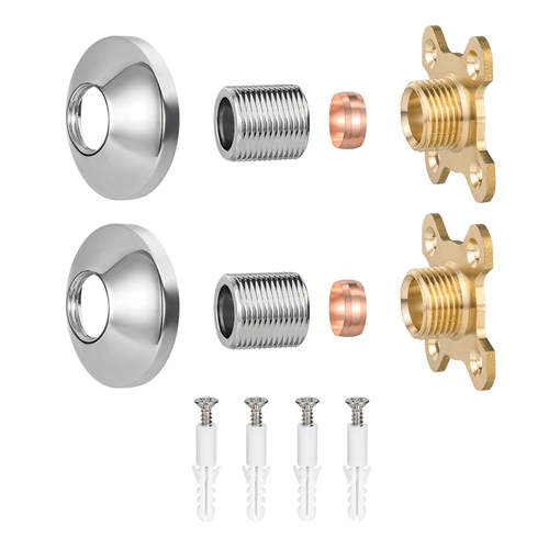Dessa runda duschmonteringssatser tjänar till badrumsinställning. Dess huvudsakliga syfte är att ge en robust, platt och lättinstallerad bas för väggmonterade kranar. Produkten antar den sammansatta strukturen av mässing och kolstål: nyckelkraften och anslutningsdelarna som är i direkt kontakt med väggen och kranarnas gränssnitt använder mässing för att säkerställa långvarig korrosionsbeständighet och täthet av anslutningen; Som den huvudsakliga bärande strukturen är plattkroppen gjord av höghållfast kolstål, vilket ger den nödvändiga stödjande styvheten för helheten och förhindrar deformation på grund av långvarig stress. Ytan på plattkroppen behandlas genom elektroplätering och andra processer, som visar ett gyllene utseende och är lätt att rengöra. Den är utformad som en standard fyrkant med ett förinställt installationshål för att matcha vanliga krantillbehör och förenkla installationsprocessen.
