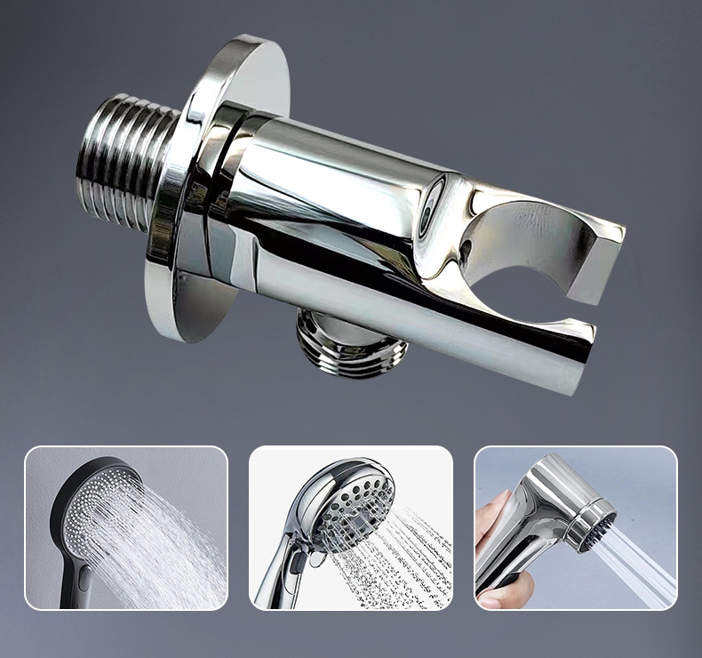 Förtjockad fyrkantig vinkelventil i massiv mässing med duschhållare, 1/2" rak stoppventil för bidéspray och handdusch, VVS-armatur för badrum