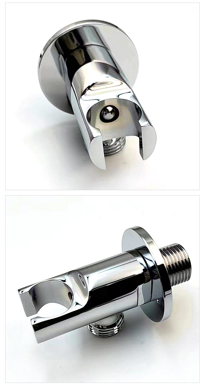 Dess kärnsyfte är att tillhandahålla en robust, hållbar och lättinstallerad väggmonterad bas för dolda handhållna duschar. Produkten antar en solid mässingsstruktur med hög renhet: de viktigaste kraftbärande och anslutningsdelarna som är i direkt kontakt med väggen och duschgränssnittet använder förstklassig mässing för att säkerställa långvarig korrosionsbeständighet, rostbeständighet och täthet av anslutningen; Ytan på produkten är behandlad med förkromning och poleringsprocesser, som visar ett ljust kromutseende, antifouling och lätt att rengöra. Den är designad med standardgängspecifikationer och en förinställd monteringsstruktur för att passa vanliga handhållna duschtillbehör, vilket förenklar installationsprocessen och säkerställer en snygg och vacker installationseffekt.