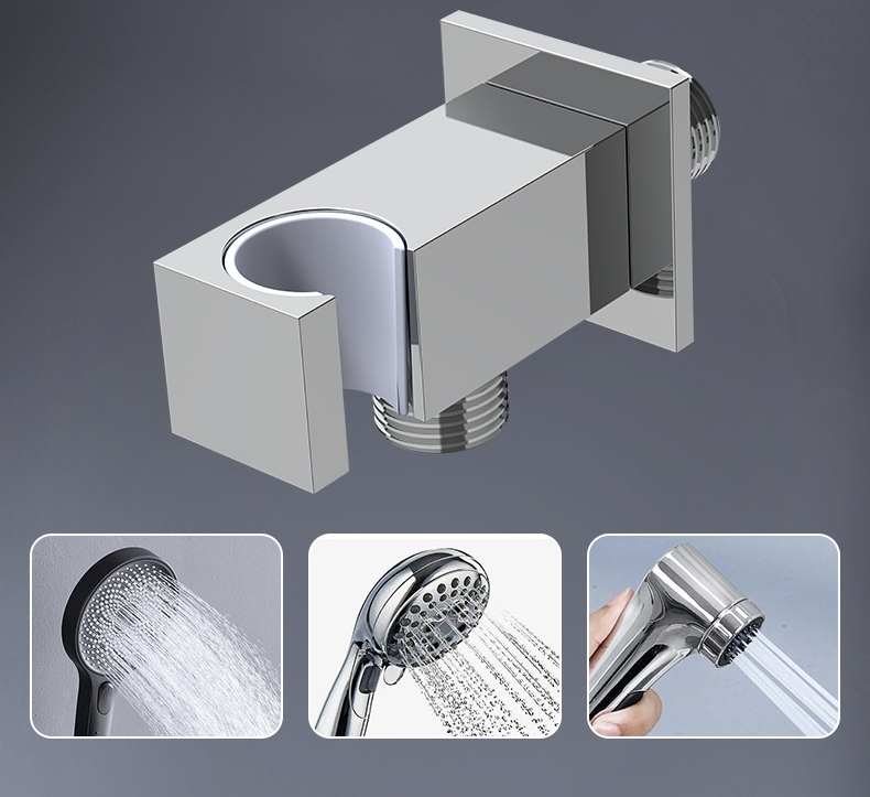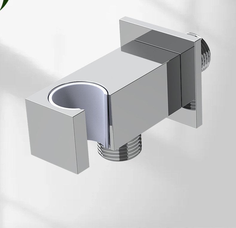 Förtjockad fyrkantig vinkelventil i massiv mässing med duschhållare, 1/2" rak stoppventil för bidéspray och handdusch, VVS-armatur för badrum